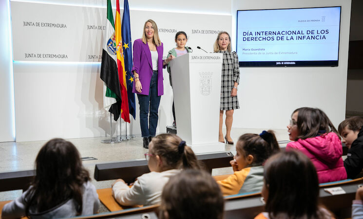 La presidenta de la Junta de Extremadura, María Guardiola, se ha sometido este lunes a las preguntas de dos aulas de Tercero de Primaria del CEIP Trajano de Mérida con motivo del Día Internacional de los Derechos de la Infancia, que se celebra el 20 de noviembre.