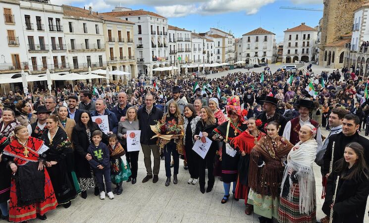 El primer edil ha añadido que "es importante que el motivo de reunirnos hoy en esta plaza sea para que todos juntos podáis bailar El Redoble, esa jota popular cacereña que desde hace unos meses se ha convertido en el himno oficial de nuestra ciudad".
