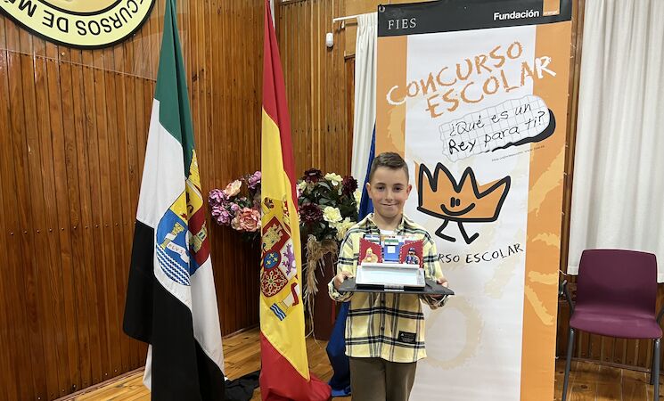 Carlos Tejado Ardilla, alumno de 4º de Primaria del Colegio Padre Manjón de Montijo, ha sido el alumno ganador en Extremadura de la 43º edición del concurso escolar '¿Qué es un rey para ti?', promovido por Fundación Institucional Española (FIES) y la Fundación Orange.