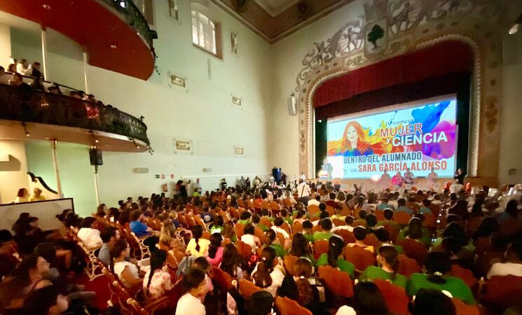 Esta actividad ha contado con la presencia de más de 600 escolares de 19 centros educativos, familiares y docentes en el teatro Carolina Coronado, donde la científica ha ofrecido una charla sobre su trayectoria y ha contestado a las preguntas de los alumnos.