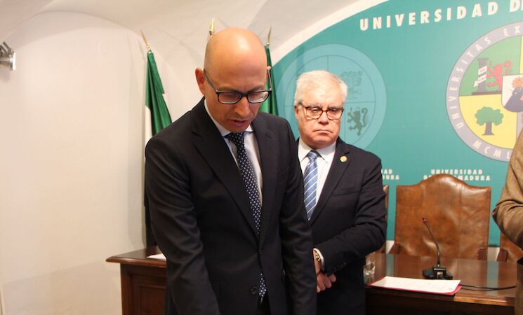 En concreto, el acto ha tenido lugar en el Rectorado de Cáceres, y ha estado presidido por el rector de la UEx, Pedro Fernández Salguero, acompañado por el secretario general, Francisco Álvarez.