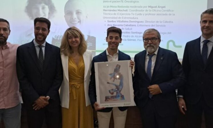 Durante el acto también se ha celebrado una mesa redonda moderada por Miguel Ángel Hernández, coordinador de la Oficina Científico-Técnica de El Ejercicio Te Cuida y profesor asociado de la UEx, que ha contado con la participación del propio Santos Villafaina, Ana Navarro, enfermera del Servicio Extremeño de Salud (SES), Santiago González, jefe de Oncología del Hospital San Pedro de Alcántara y Manuela García, paciente oncológica.