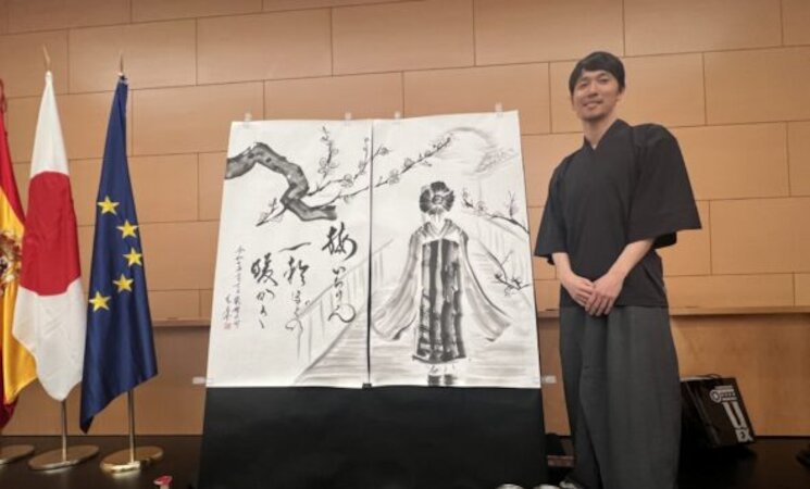 Tras la inauguración, los asistentes han podido disfrutar de una demostración de pintura japonesa 'Sumi-e' a cargo del artista Mitsuru Nagata.