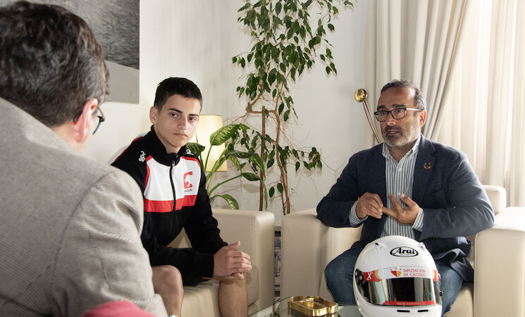 El presidente de la Diputación de Cáceres, Miguel Ángel Morales, ha recibido este martes en su despacho oficial al joven piloto de Karting Rubén Muñoz, de tan solo 16 años, y que en apenas dos, ha conseguido ser el campeón de Extremadura de las Karting Series.