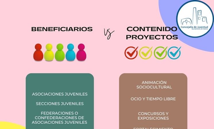 El Ayuntamiento de Cáceres ha abierto la convocatoria para la concesión de subvenciones de la Concejalía de Juventud y Festejos, en régimen de concurrencia competitiva, para proyectos en materia juvenil desarrollados por entidades juveniles dentro del año 2025, dotadas con un montante total de 30.000 euros.