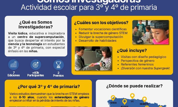 El Centro de Supercomputación de Extremadura (Computaex), en colaboración con la Red Española de Supercomputación (RES), ha puesto en marcha el proyecto piloto 'Somos Investigadoras', una iniciativa dirigida a alumnas de 3º y 4º de Educación Primaria de la región que tiene como objetivo "fomentar las vocaciones científicas y tecnológicas en las niñas desde edades tempranas".