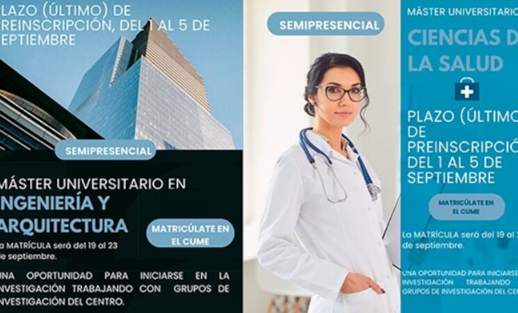 El Centro Universitario de Mérida (CUMe-UEx) informa que se ha abierto el último plazo para la preinscripción en los Másteres Universitarios de Investigación (MUI) en Ingeniería y Arquitectura y en Ciencias de la Salud, dos programas semipresenciales que ofrecen una sólida formación investigadora en colaboración directa con los grupos de I+D+i del centro.