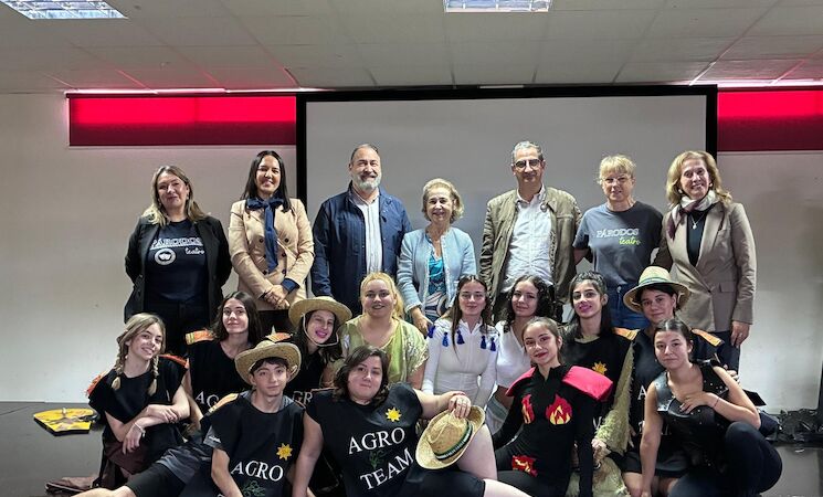 La consejera de Educación, Ciencia y Formación Profesional, María Mercedes Vaquera, celebra el triunfo del IES Siberia Extremeña de Talarrubias (Badajoz) en el XVIII Concurso Nacional de Teatro Clásico Grecolatino.