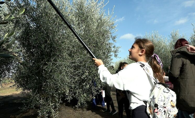 Entre olivos y capazos, los niños han practicado la técnica del "ordeño" del olivar, recogiendo las aceitunas con las manos "una a una", como se hacía antiguamente, antes de poner en marcha los métodos modernos de los "vibradores automáticos".