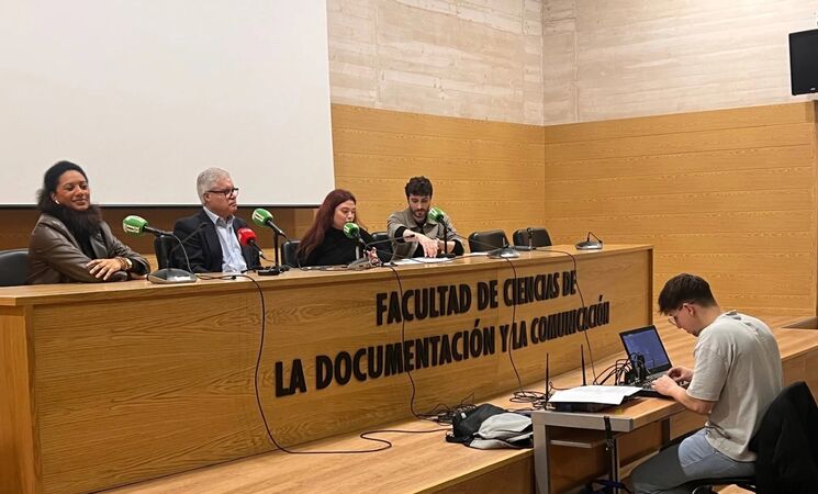 La mesa de debate ha reunido también a profesionales de referencia del panorama radiofónico y audiovisual extremeño, como María Hurtado y Álex Carpallo, de Canal Extremadura, así como Miriam Garriga de la COPE y José Emiliano Barrena de la cadena SER, antiguos alumnos de la facultad.