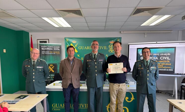 Los alumnos de los equipos ganadores en la fase clasificatoria autonómica de Extremadura de la VII edición de la Ciberliga Pre Amateur han recibido sus diplomas en la Comandancia de la Guardia Civil de Cáceres.