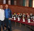 El delegado de Cultura del Ayuntamiento de Mérida, Antonio Sánchez, y el propietario de la colección, el bombero emeritense José Manuel Rivero Tapia, han inaugurado este lunes en el Centro Cultural Alcazaba la muestra "Bomberos del mundo".