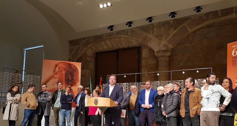 Tras la reunión del Patromato Consorcio del Festival de Mérida, el Director del evento cultural emeritense, Jesús Cimarro, junto al Presidente de la Junta, Guillermo Fernández Vara y, acompañados de algunos actores, directores y colaboradores, han presentado la programación de la 65 Edición.
