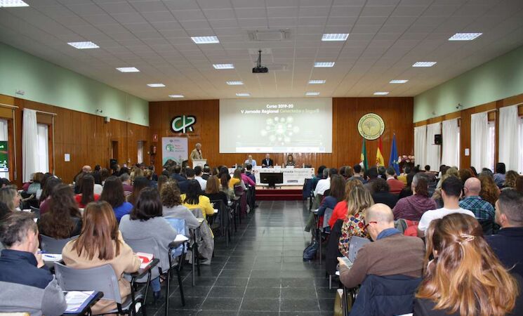Unas 220 personas, entre coordinadores y participantes del programa Foro Nativos Digitales, coordinadores de los grupos de alumnos cibermentores, personal de los departamentos y equipos de orientación y docentes, participan este miércoles, 12 de febrero, en Mérida, en la V Jornada Regional 'Conectado y Seguro'.