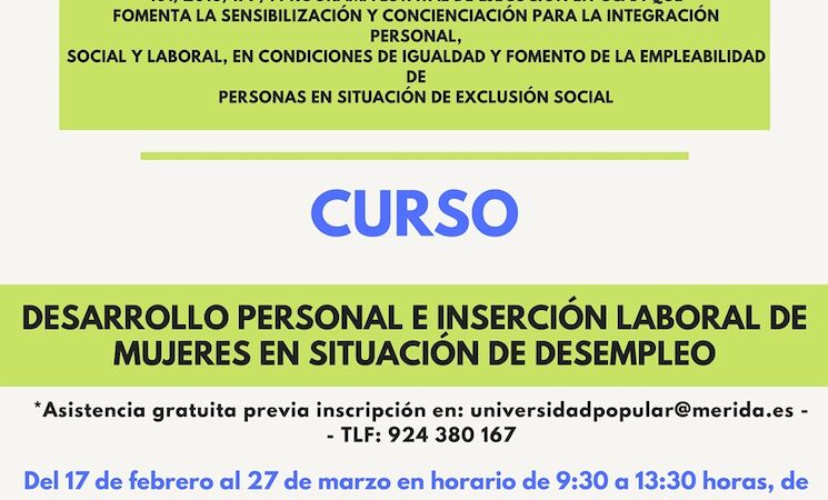 Por segundo año consecutivo, la Universidad Popular de Mérida vuelve a celebrar una formación dirigida a mujeres en riesgo de exclusión social que cuenta con el apoyo de la Federación Española de Universidades Populares (FEUP) y el Ministerio de Sanidad, Consumo y Bienestar Social.