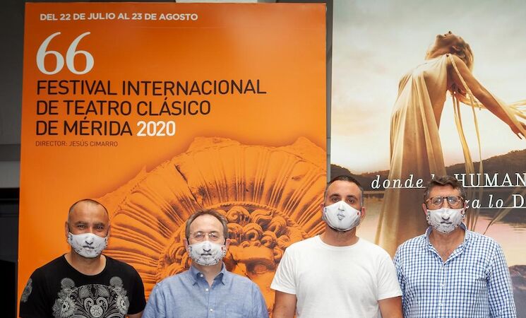 Los actores y trabajadores de la 66ª edición del Festival Internacional de Teatro Clásico de Mérida utilizarán unas singulares mascarillas grecolatinas diseñadas por la empresa emeritense Weark para la protección contra el COVID-19.