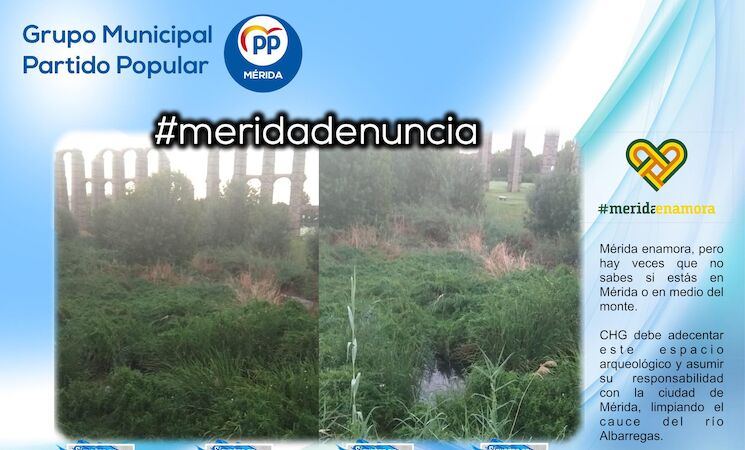 Por todo ello, el Grupo Municipal Popular ha pedido a Rodríguez Osuna que se plante ante la "inacción" de Confederación Hidrográfica y de la Junta de Extremadura y además ha animado a los vecinos de Mérida a que compartan con su grupo fotos de sus calles y barrios para que el equipo de gobierno "visualice la realidad y actúe en consecuencia de una vez por todas", ha sentenciado.