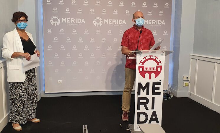 El alcalde en funciones de Mérida, Julio César Fuster Flores, junto a la delegada de Educación en el Ayuntamiento, Susana Fajardo, han presentado este miércoles todos los detalles del 'Plan Municipal de Vuelta al Colegio', en el que el equipo de Gobierno está trabajando "de forma transversal y coordinada" y que afecta a los 16 colegios públicos de la ciudad.