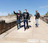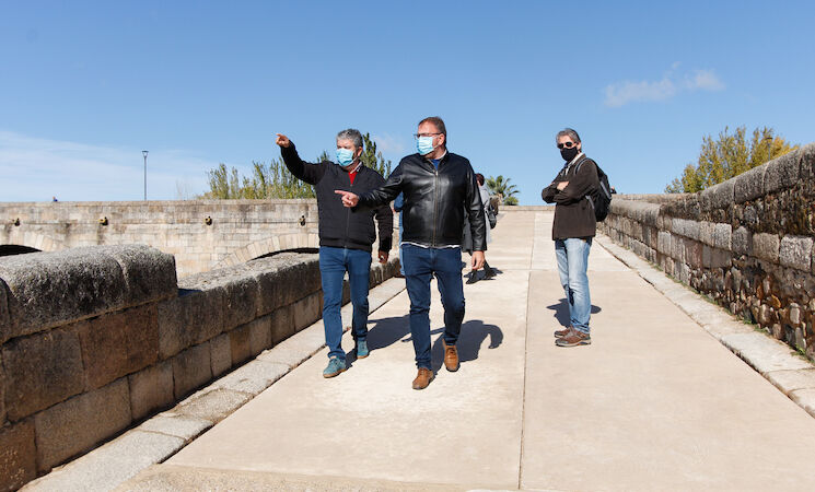 El alcalde de Mérida, Antonio Rodríguez Osuna, junto a la portavoz municipal, Carmen Yáñez, y el Director del Consorcio de la Ciudad Monumental de Mérida, Félix Palma, han visitado este lunes las obras realizadas en el descendedero del Puente Romano, una vez finalizados, "prácticamente en su totalidad", los trabajos de adecuación y accesibilidad al paseo perimetral del Guadiana desde el propio Puente Romano.