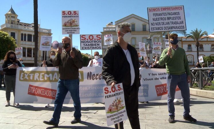 Los feriantes extremeños han protagonizado este martes una manifestación en Mérida con la que reclaman poder trabajar y que se celebren ferias en la región ya que llevan 18 meses "parados" y, por lo tanto, "sin ningún ingreso".