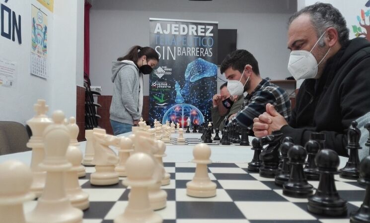 Tras la mejora de la situación sanitaria como consecuencia de la pandemia de la Covid-19, el programa terapéutico Ajedrez Sin Barreras se retoma en la Asociación FEAFES CALMA de Mérida, organizado por el Club Ajedrez Ajoblanco con el patrocinio de la Fundación de Jóvenes y Deporte (FJyD).
