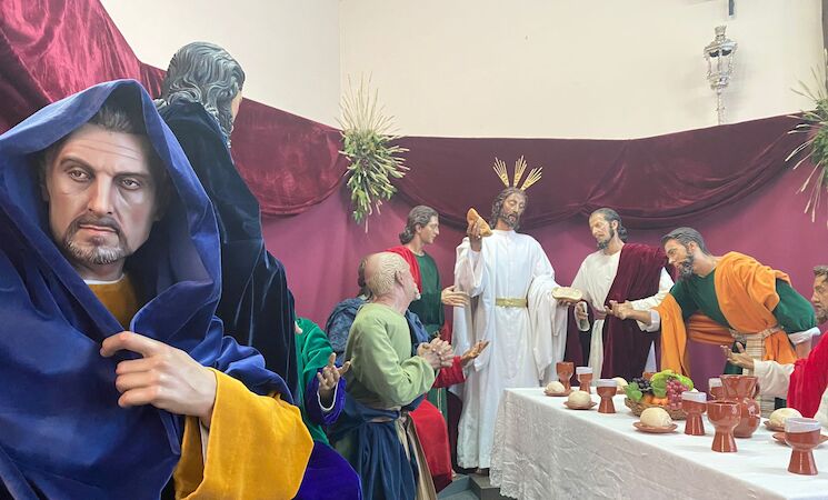 Las imágenes del Paso de la Sagrada Cena y Nuestra Señora del Patrocinio ya están en la Casa Hermandad de la Cofradía, junto a la Parroquia de San José, en Mérida.