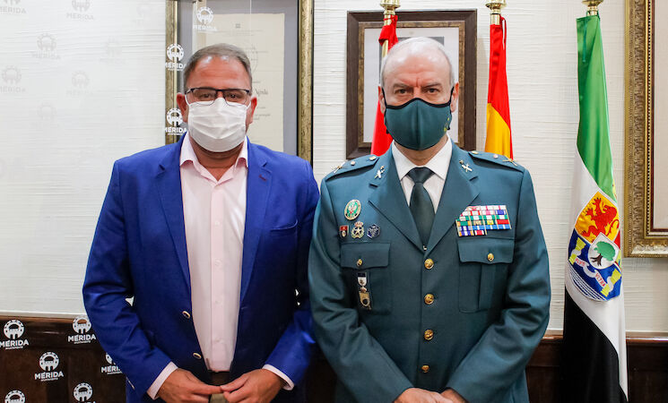 El alcalde de Mérida, Antonio Rodríguez Osuna, ha recibido este viernes en su despacho del Ayuntamiento a Tomás García Gazapo, con motivo de su ascenso al empleo de General de Brigada del Cuerpo de la Guardia Civil y su cese como Director de la Escuela de Tráfico de la Guardia Civil.
