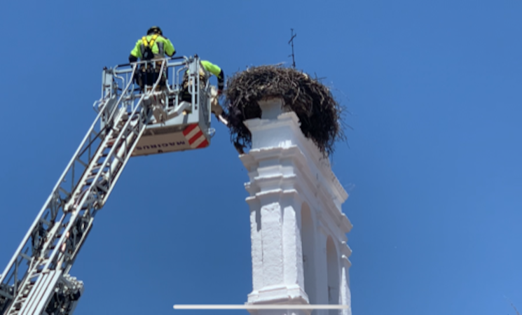 Rápidamente acudieron al lugar una dotación de policía local y de bomberos que procedieron a su rescate. Una vez comprobaron el estado del cigoñino, éste fue llevado al centro de recuperación de fauna salvaje (AMUS) para su cuidado y asistencia.