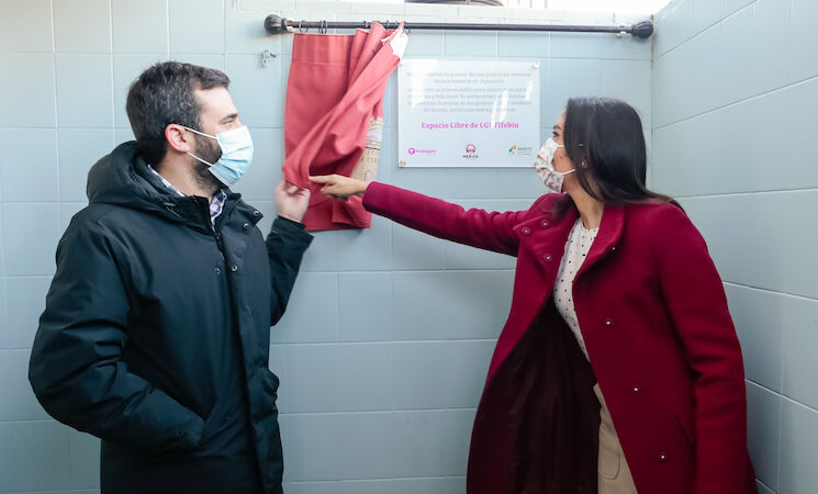 La delegada de Diversidad LGTBI del Ayuntamiento de Mérida, Pilar Amor, y el delegado de Deportes, Felipe González, han inaugurado este jueves una placa en la piscina climatizada de La Argentina que proclama esta instalación como "Espacio libre de LGTBIfobia".