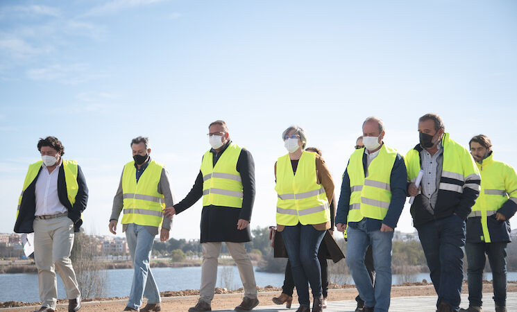 El alcalde de Mérida, Antonio Rodríguez Osuna, junto a la delegada de Urbanismo, Carmen Yáñez, y la consejera de Movilidad, Transporte y Vivienda, Leire Iglesias, han visitado este miércoles el estado de ejecución en el que se encuentran las obras de la II Fase del desdoblamiento de la Avenida del Río.