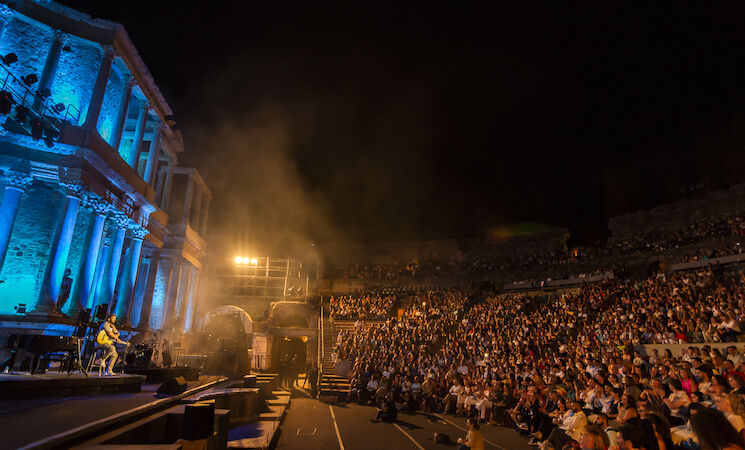 Para cerrar, el malagueño escogió "Quién" y uno de sus últimos lanzamientos, "Llueve sobre mojado", con los que se despidió del Teatro Romano de Mérida.