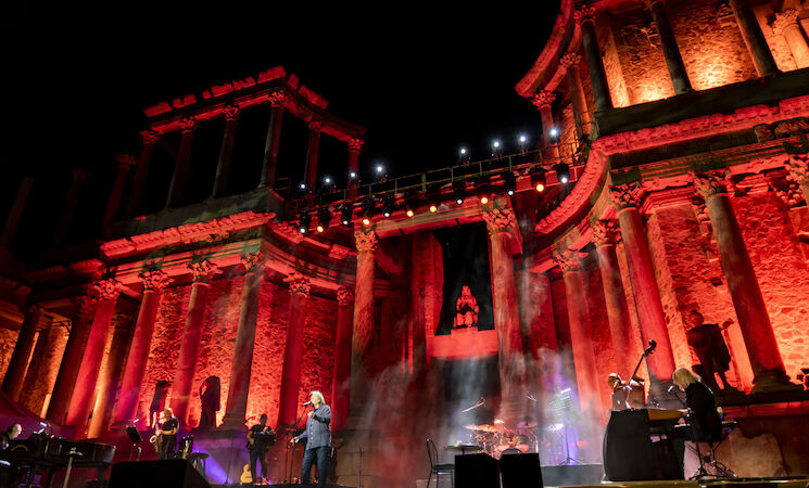 Así pues, los principales temas del cantautor volvieron a sonar en el Teatro Romano de la capital extremeña a modo de despedida. "Vengo a despedirme de esta tierra, de esta ciudad y de vosotros", manifestó el artista catalán.