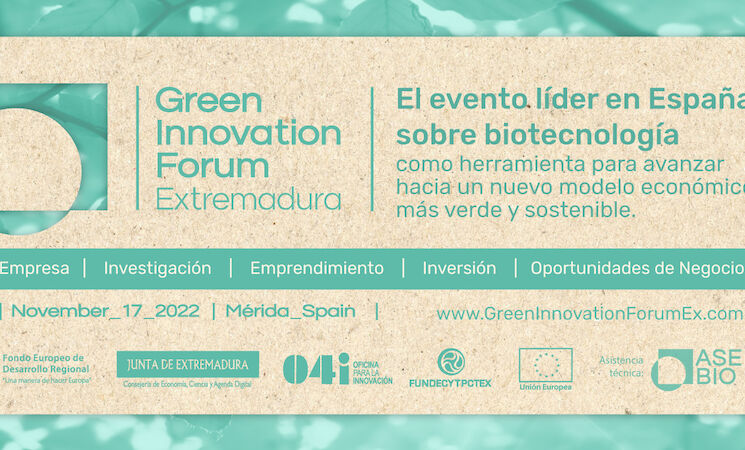 El evento de industria biotecnológica 'Green Innovation Forum' se celebrará el próximo 17 de noviembre en Mérida, dirigido a empresas, emprendedores y personal de investigación para "impulsar un ciclo de crecimiento económico más sostenible gracias al potencial del sector en Extremadura".