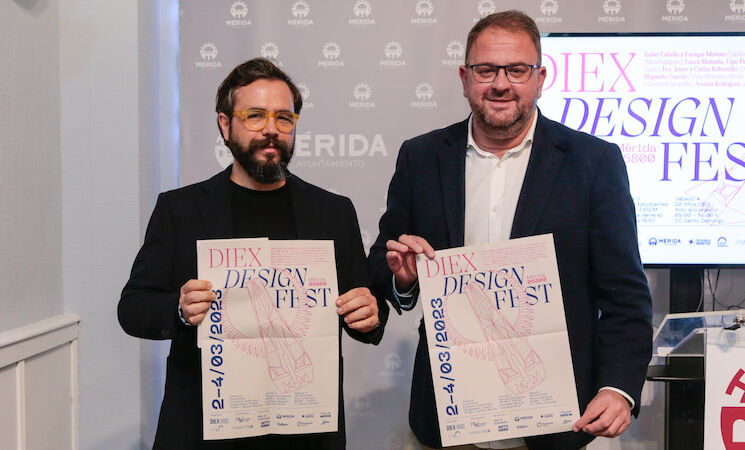 El alcalde de Mérida, Antonio Rodríguez Osuna, y el presidente de la Asociación de Diseñadores de Extremadura (DIEX), Daniel Hervás, han presentado el festival de diseño y creatividad DIEX Desing Fest, que se celebra desde este jueves, 2 de marzo, y hasta el sábado en la ciudad con un amplio programa de actividades.
