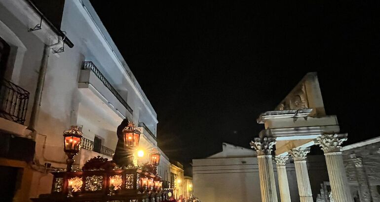 La Real Hermandad y Cofradía Infantil de Nuestro Padre Jesús de Medinaceli, Santísimo Cristo de las Injurias y Nuestra Señora del Rosario brilló por las calles de Mérida en la noche de este pasado Lunes Santo. Y lo hizo después de tres años sin poder salir de su templo en la Concatedral de Santa María, ya que a los dos años sin poder hacerlo a causa de la pandemia por la Covid-19, el pasado año lo impidió la lluvia caída ese día en la ciudad.