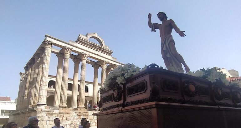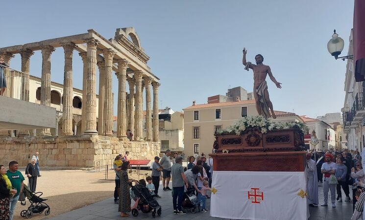 La alegría de Jesús Resucitado por las calles de Mérida puso en la mañana de este Domingo de Resurrección el punto y final a una Semana Santa única, en su quinto año como Fiesta de Interés Turístico Internacional.