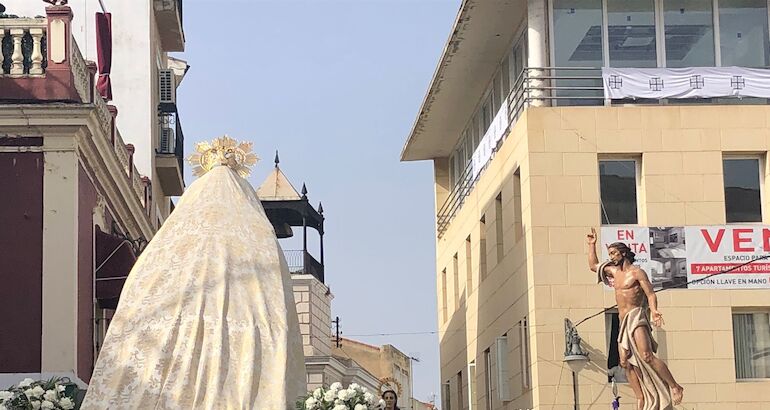 A las 10:00 horas, las campanas de la Basílica de Santa Eulalia sonaban anunciando la salida de la procesión más alegre de la Semana de Pasión emeritense, la más importante para los católicos, en la que se celebra el culmen de la fe cristiana: la resurrección de Jesús después de morir en la cruz.