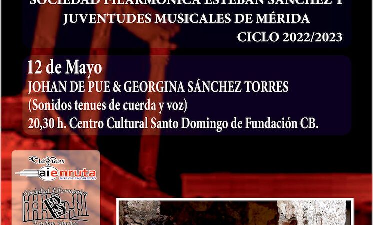 La Sociedad Filarmónica de Mérida ha organizado para este viernes, 12 de mayo, un nuevo concierto de su actual ciclo que correrá a cargo del dúo compuesto por Georgina Sánchez Torres, violonchelo y Johan de Pue, guitarra y voz.