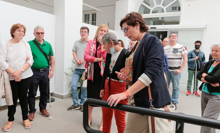 Un grupo mayores de la ONCE comprueba accesibilidad en el Ayuntamiento de Mérida