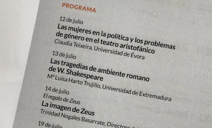 En esta misma línea, el director del Encuentro y catedrático de la Universidad de Extremadura, Santiago López Moreda, ha detallado la programación de estas seis conferencias. Así pues, esta edición arranca este miércoles, 12 de julio, con 'Las mujeres en la política y los problemas de género en el teatro aristofánico', la cual será impartida por Claudia Teixeira, de la Universidad de Évora. En ella se estudiará a Aristófanes como referente de la descomposición del mundo griego en las comedias de Aristófanes.