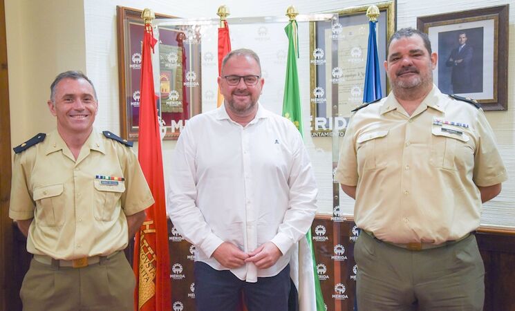 El alcalde de Mérida, Antonio Rodríguez Osuna, ha recibido este jueves, día 24, en su despacho en el consistorio a los tenientes coroneles Rodrigo José Hernández Navarro y Francisco Javier Ponce de León.