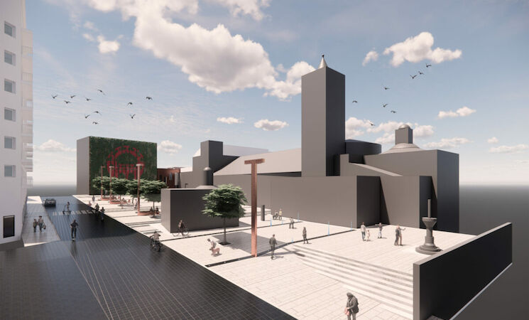 Así pues, la plaza contará con nuevas luminarias e iluminación artística para el monumento, habrá nuevo mobiliario urbano, fuentes de agua, jardines verticales y está diseñada como un gran espacio público que engrandece la propia basílica.