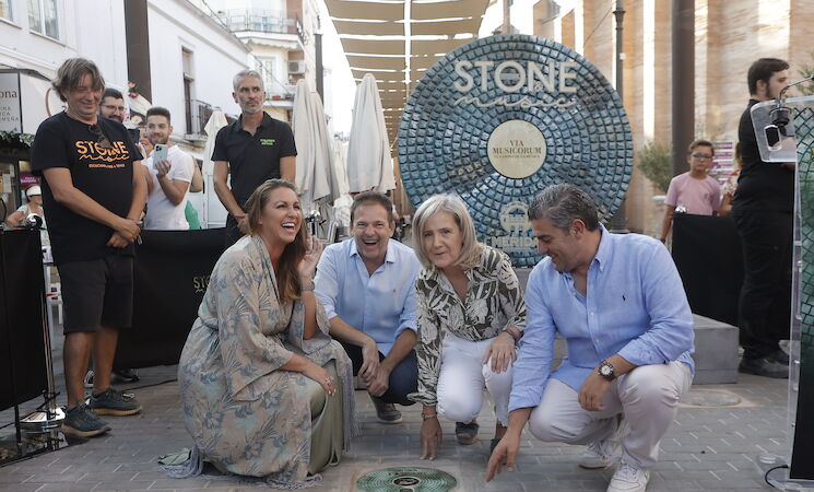 Este viernes, en el marco del STONE& MUSIC Festival, Niña Pastori ha recibido un reconocimiento con el descubrimiento del vinilo elaborado por Terracota con la firma de la cantante y que ya está situado en la Vía Musicorum de la calle José Ramón Mélida de Mérida.