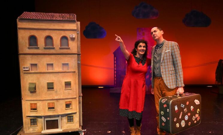 'Debajo del tejado' es una obra cargada de realismo mágico que abarca muchas historias, representadas cada una en distintas disciplinas y lenguajes teatrales, como clown, marionetas, juego de sombras o magia.
