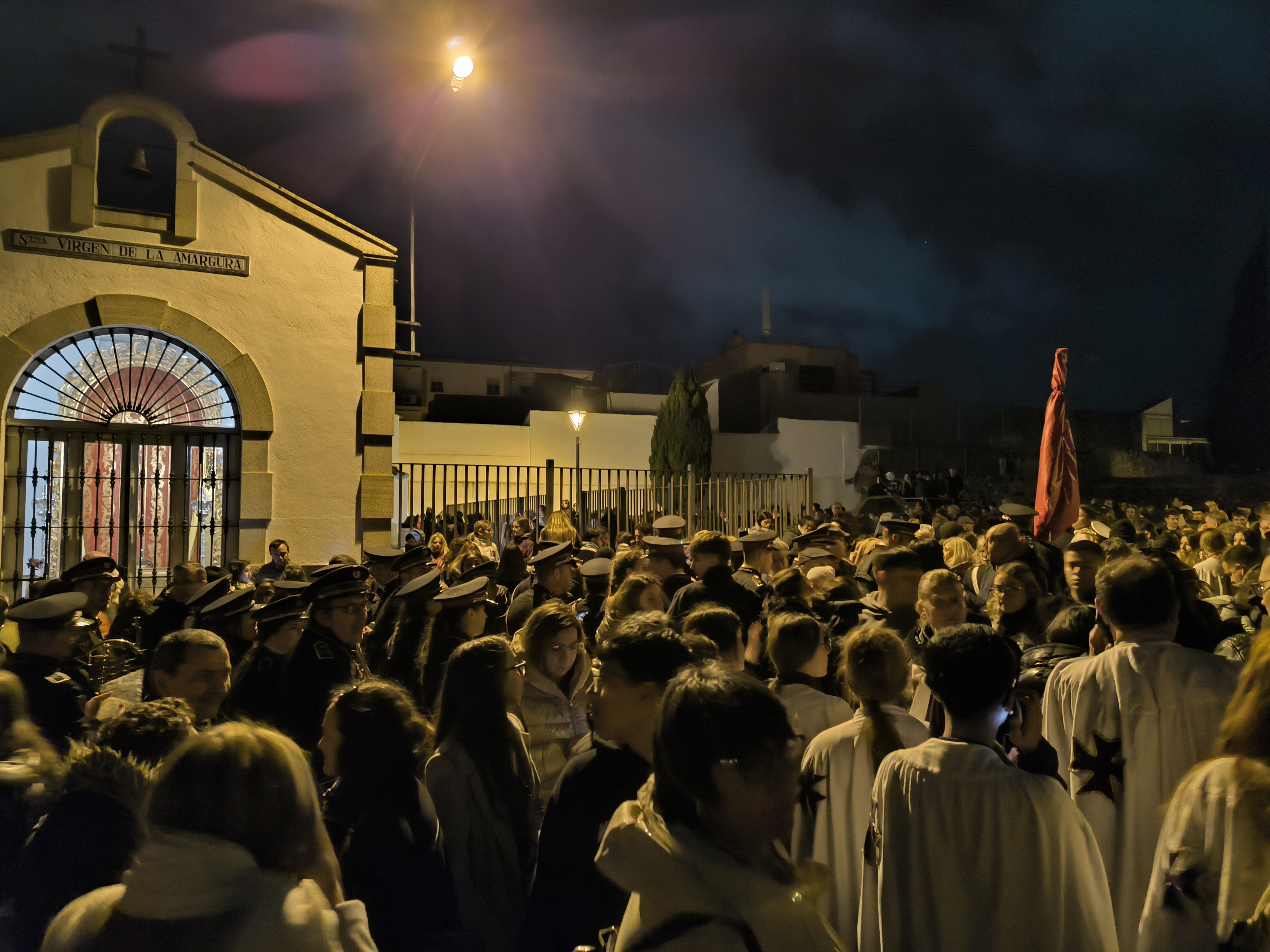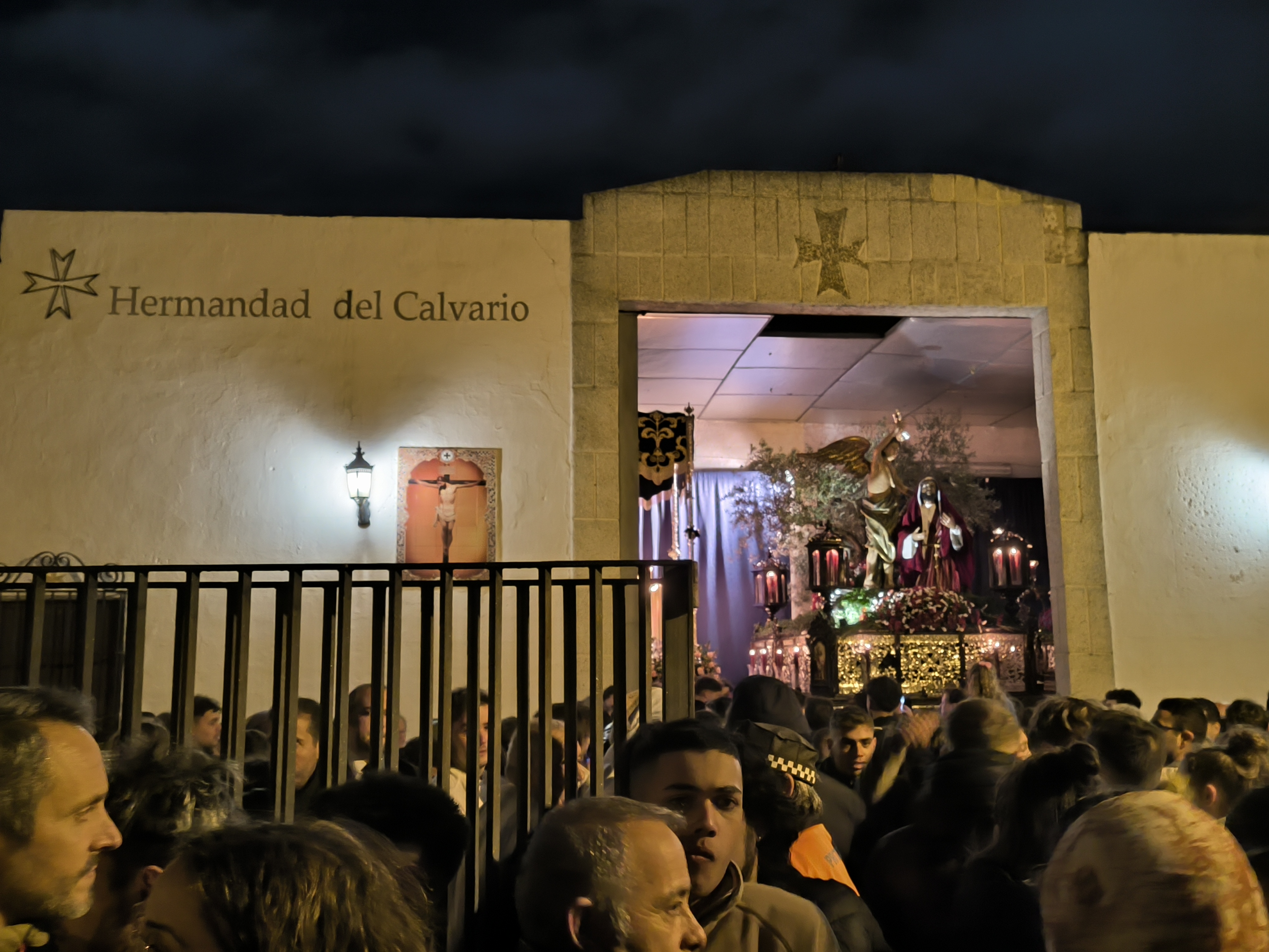 Así pues, El Barrio lloraba ante su Ermita del Calvario donde, con las puertas abiertas, se mostraban sus cuatro pasos -Oración en el Huerto, Flagelación, Nuestro Padre Jesús Nazareno y María Santísima de la Amargura-, preparados con mimo, adornados con gusto y venerados con amor y lágrimas que se reflejaban en los ojos de sus cofrades -especialmente en los de sus costaleros y penitentes del Nazareno-.