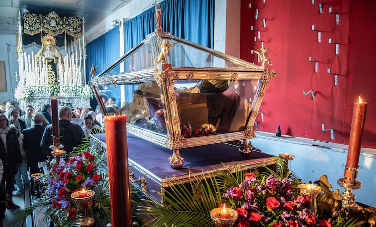Eso sí, las puertas de la Ermita del Calvario estuvieron abiertas desde las 18:30 horas -hora en la que estaba prevista que empezara la procesión- y hasta las 20:00 horas, para quienes quisieron visitar, contemplar y rezar ante el Cristo Yacente y la Santísima Virgen de los Dolores, ambos entronizados en sus respectivos pasos.