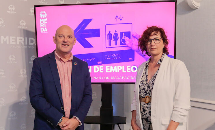 Los delegados de Accesibilidad Universal e Inclusión y de Recursos Humanos, Susana Fajardo y Julio César Fuster, respectivamente, han presentado el V Plan de Empleo para personas con discapacidad que va a poner, nuevamente, en marcha el Ayuntamiento de Mérida, tal y como lleva haciéndose desde 2015, con una previsión de entre 15 y 18 contratos previstos.