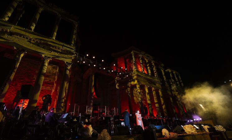 El público, minutos antes de ver a la cantante, ya coreaba "Sí, sí, sí, Pantoja ya está aquí". Y como si de una diosa romana se tratase, Isabel Pantoja, 'la tonadillera', apareció ante un abarrotado Teatro Romano que estaba entregado desde antes de comenzar el show.