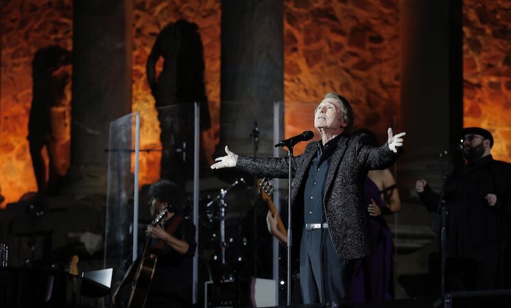 Raphael regresó este pasado domingo al Stone & Music de Mérida con una actuación de más de dos horas en el Teatro Romano en la que hizo un repaso por todos sus "imprescindibles".