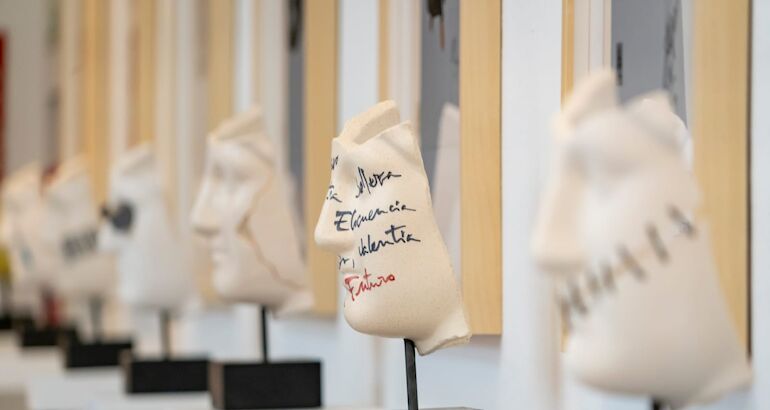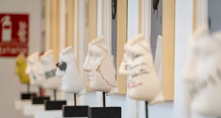 El estudio de cerámica Terracota Mérida ha inaugurado este lunes, en la sede del Festival Internacional de Teatro Clásico, la exposición 'Arts Fatum. Diez años caminando por el destino del arte', al tiempo que ha presentado la séptima máscara, exclusiva para el certamen teatral, inspirada en el lema de este año 'Un viaje al corazón del teatro'.